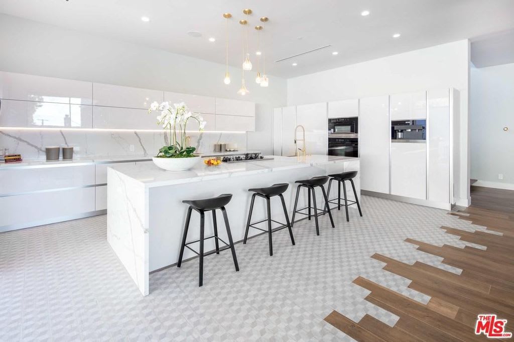Exceptional new construction Architecture boasts exquisite craftsmanship, European designer finishes, and thoughtful design. This custom contemporary ‘Smart Home’ features an open plan with grand scale and meticulously designed spaces including a Bauformat chef’s kitchen complete with Miele appliances, well-appointed en suite bedrooms, in-home theater, gym, wine cellar, and a spacious rooftop patio. Luxury details include French Oak hardwood floors throughout, Fleetwood pocket doors, and imported and exotic materials. The stunning master suite showcases city views and a spa-like bathroom with a steam shower, soaking tub, dual sinks, and a massive glass-walled rainfall shower. The expansive backyard features a sparkling swimmer’s pool and spa and various entertaining areas including a dining cabana complete with an outdoor bathroom and shower as well as a bar with a built-in BBQ. No expense has been spared in constructing this unique contemporary home which is ideally located just minutes away from the best shops, nightlife, and restaurants Beverly Hills has to offer.